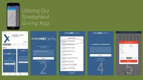 - Download the ShelbyNext | Giving app from either the App Store (for iOS) or the Andriod Market.